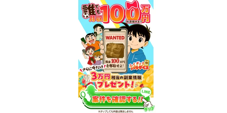 スマホだけで初められ、無料で誰でも月収100万円が目指せるそうですが、具体的にどうやって稼げるのか記載がありませんでした。